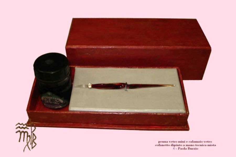 Cofanetto rosso penna mini rossa vetro di murano