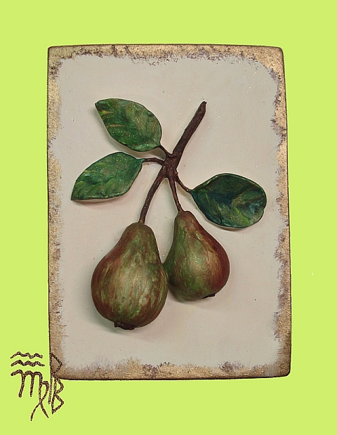 Clicca per ingrandire "Piastrella Rilievo Pere" handmade by Paola Burzio cod 008 - misure h 25 circa 28.00 euro DESCRIZIONE