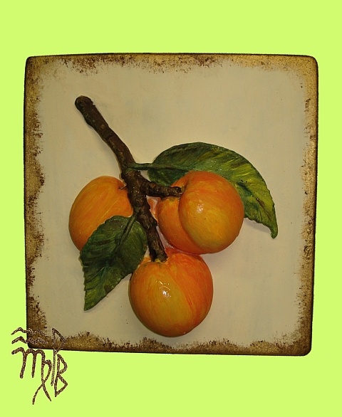 Clicca per ingrandire "Piastrella Rilievo Albicocche" handmade by Paola Burzio cod 012 - misure h 30 circa 28.00 euro DESCRIZIONE