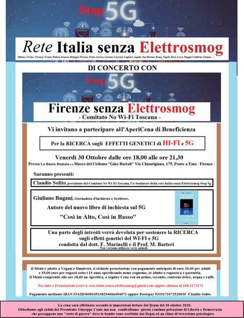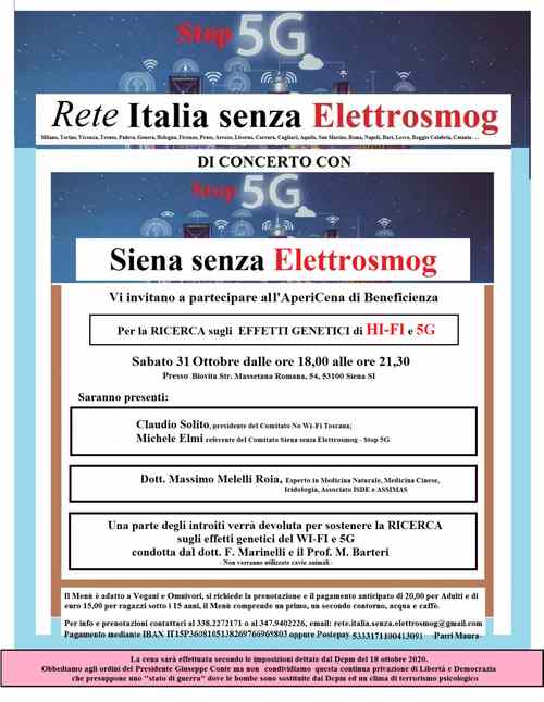 Rete Italia senza Elettrosmog - Stop 5g, organizzazione di tutela ambientale attiva in tante regioni Italiane, organizza due serate di informazione su cosa è l'elettrosmog