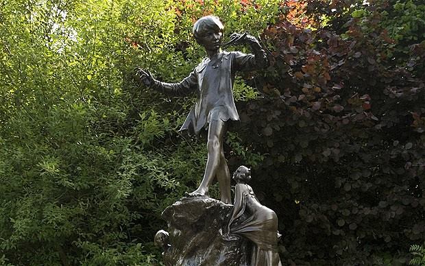 La statua di Peter Pan nei giardini di Kensington, eretta in segreto durante la notte